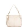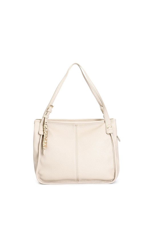 Shopping bag morbida in materiale a grana grossa tracolla con lettering in metallo pratica tramezza con zip interna per uno stile casual e funzionale.